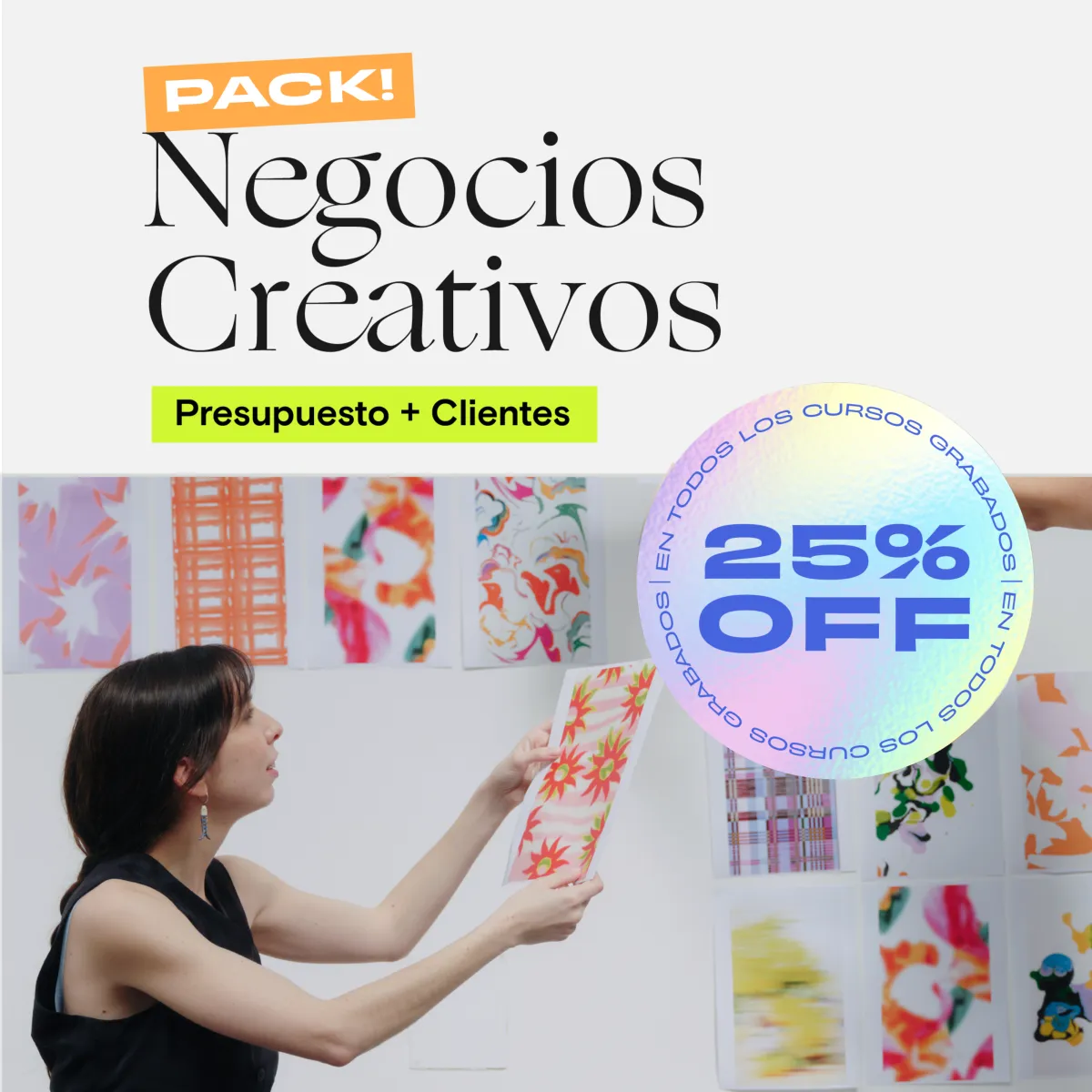 Con el Pack NEGOCIOS CREATIVOS, vas a tener los dos pilares que necesitás para que tu negocio freelance funcione de verdad: clientes que te eligen + presupuestos que te hacen crecer y tener tiempo de crear tranquila y no presa de una agenda sobrepasada.
