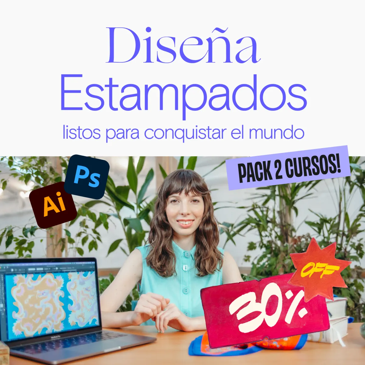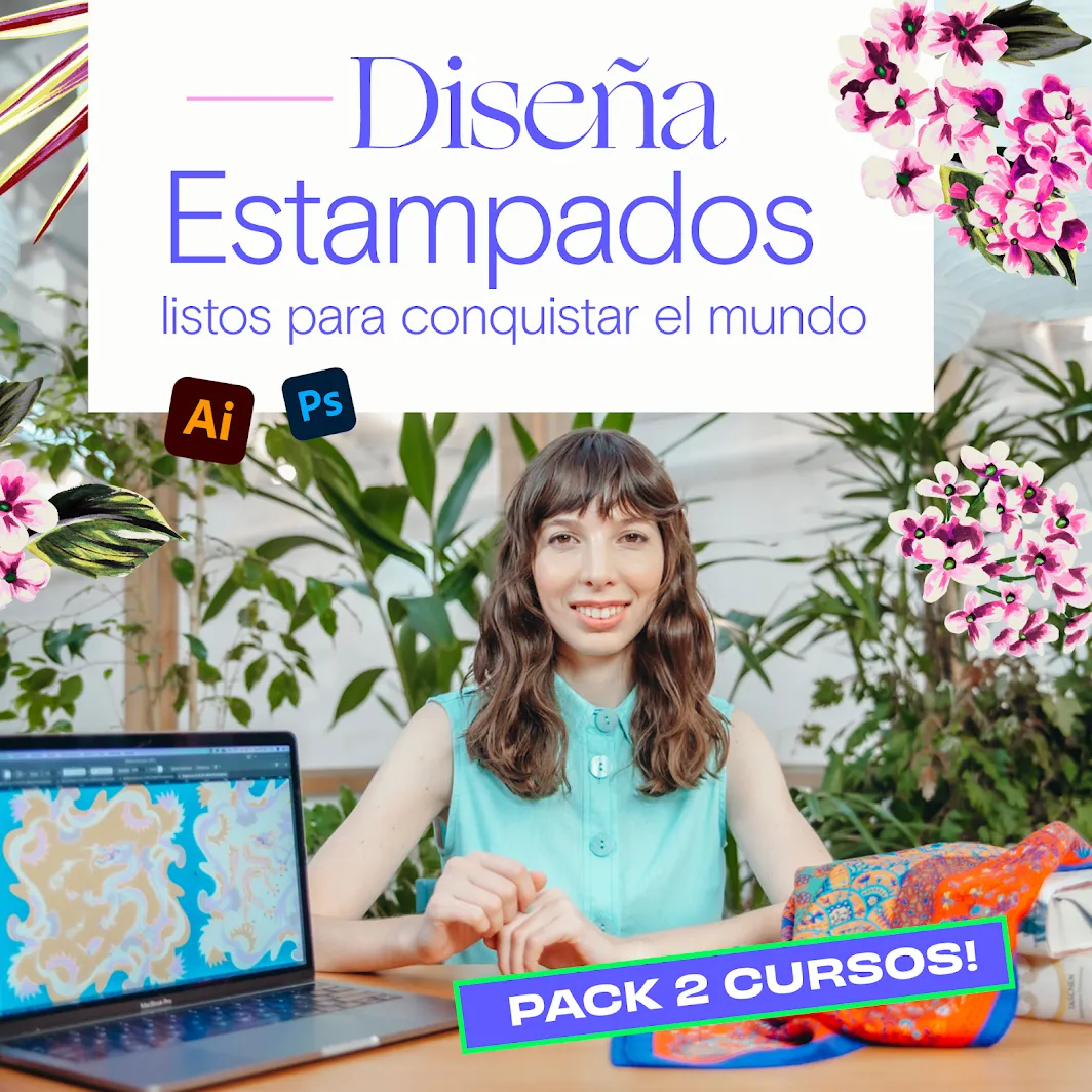 Con este pack de cursos vas a aprender TODO LO NECESARIO para dominar Illustrator y Photoshop y crear diseños de calidad con estampados que brillen, enamoren a tus clientes y ¡generen ventas explosivas!